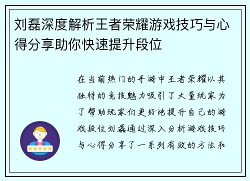 阅读近期,热门竞技游戏《和平精英》的最新实力排名正式揭晓,引发了众多玩家和粉丝的热议。在这次排名中,LNG战队以出色的表现创下历史新高,这不仅让他们在战队之间脱颖而出,也引起了广泛关注与讨论。本文将从四个方面详细分析这次排名及其背后的原因,分别是LNG战队的崛起历程、球队成员的个人实力、比赛策略与团队配...