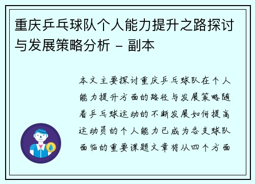 重庆乒乓球队个人能力提升之路探讨与发展策略分析 - 副本