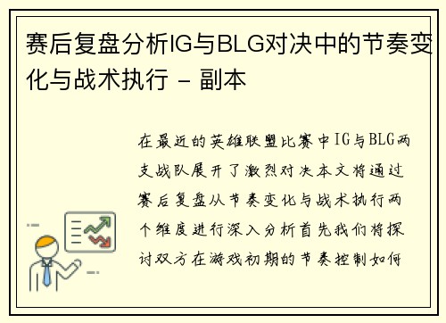 赛后复盘分析IG与BLG对决中的节奏变化与战术执行 - 副本